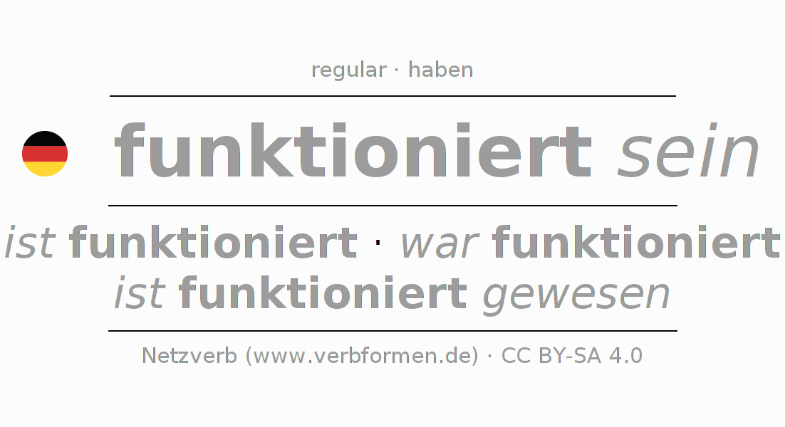Examples for using the conjugation of the verb funktionieren. These are real sentences and sentences from the project Tatoeba. For each conjugated form, such a sentence example is displayed. The verb form is highlighted. If there are more than one sentence, an example with the German verb funktionieren is selected. In order to understand the conjugation not only by the examples, but also to train, worksheets for the verb funktionieren are available.