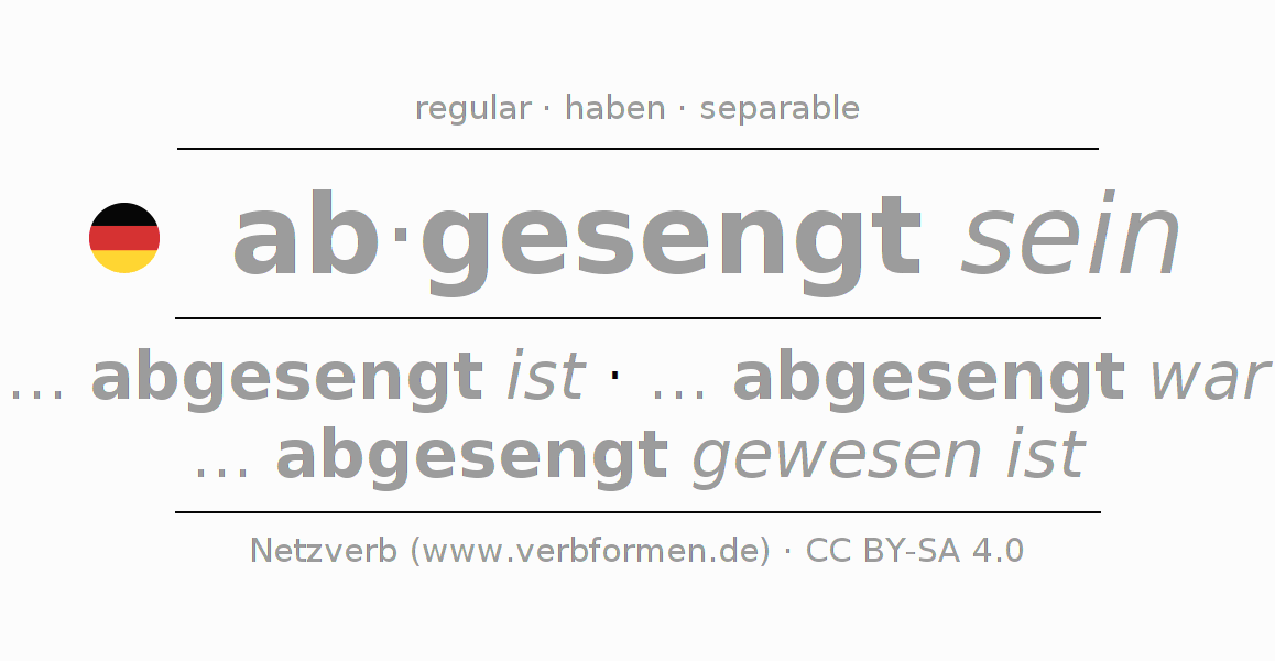 Examples for using the conjugation of the verb absengen. These are real sentences and sentences from the project Tatoeba. For each conjugated form, such a sentence example is displayed. The verb form is highlighted. If there are more than one sentence, an example with the German verb absengen is selected. In order to understand the conjugation not only by the examples, but also to train, worksheets for the verb absengen are available.