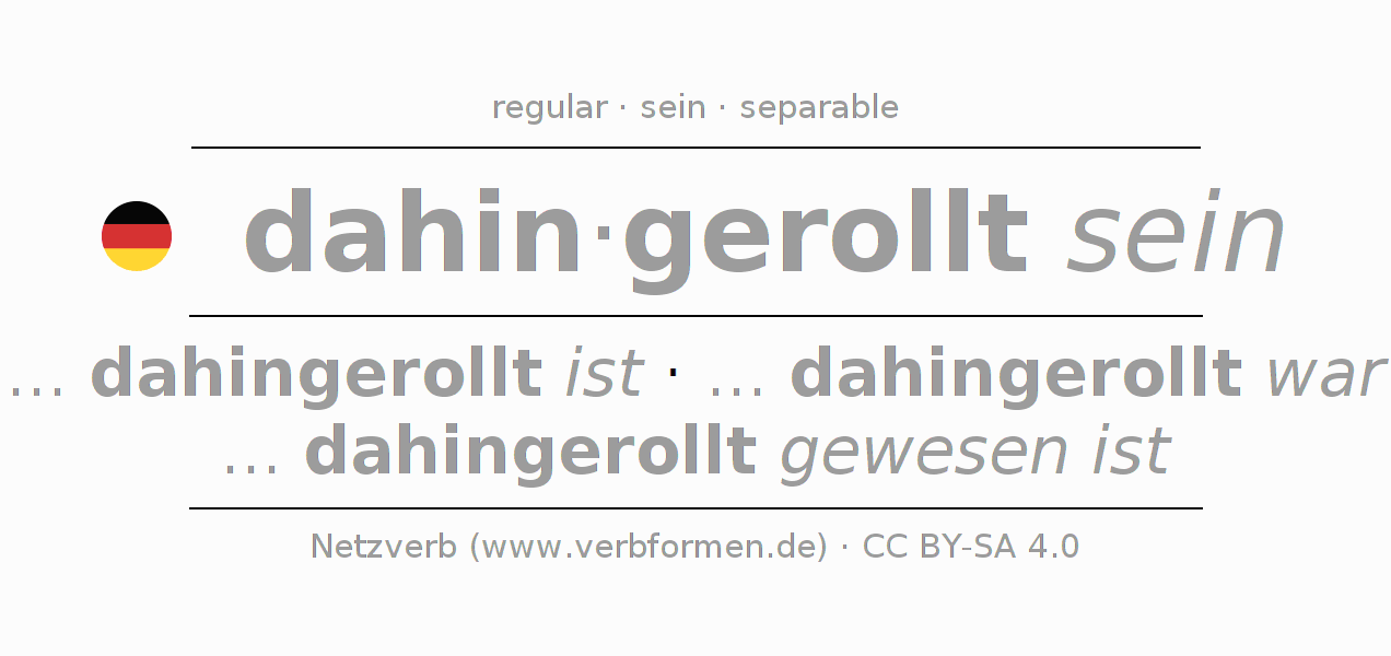 Examples for using the conjugation of the verb dahinrollen. These are real sentences and sentences from the project Tatoeba. For each conjugated form, such a sentence example is displayed. The verb form is highlighted. If there are more than one sentence, an example with the German verb dahinrollen is selected. In order to understand the conjugation not only by the examples, but also to train, worksheets for the verb dahinrollen are available.