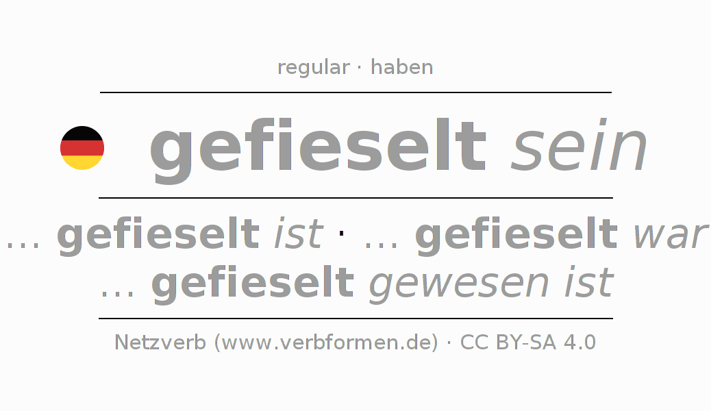 Examples for using the conjugation of the verb fieseln. These are real sentences and sentences from the project Tatoeba. For each conjugated form, such a sentence example is displayed. The verb form is highlighted. If there are more than one sentence, an example with the German verb fieseln is selected. In order to understand the conjugation not only by the examples, but also to train, worksheets for the verb fieseln are available.