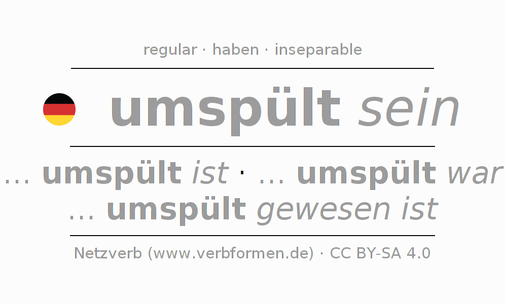 Examples for using the conjugation of the verb umspülen. These are real sentences and sentences from the project Tatoeba. For each conjugated form, such a sentence example is displayed. The verb form is highlighted. If there are more than one sentence, an example with the German verb umspülen is selected. In order to understand the conjugation not only by the examples, but also to train, worksheets for the verb umspülen are available.