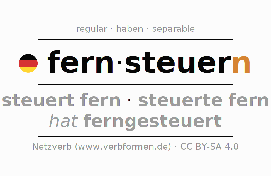 - Future: ich werde fernsteuern, du werdest fernsteuern, er werde fernsteuern, wir werden fernsteuern, ihr werdet fernsteuern, sie werden fernsteuern