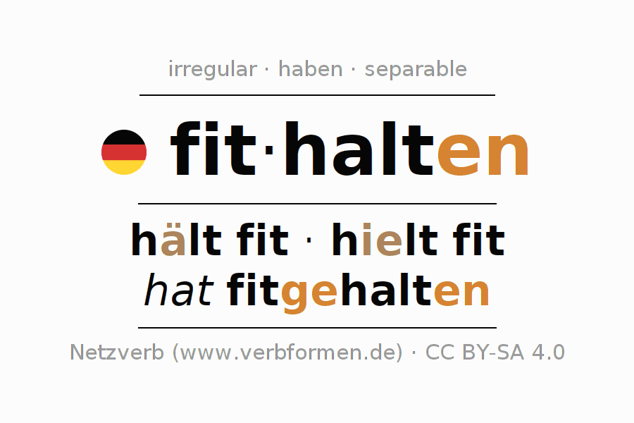 - Present: halt(e) (du) fit, halten wir fit, haltet (ihr) fit, halten Sie fit