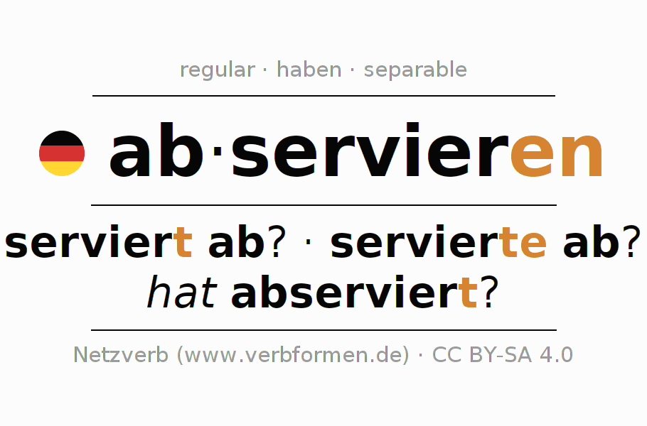 - Present: servier(e) (du) ab, servieren wir ab, serviert (ihr) ab, servieren Sie ab