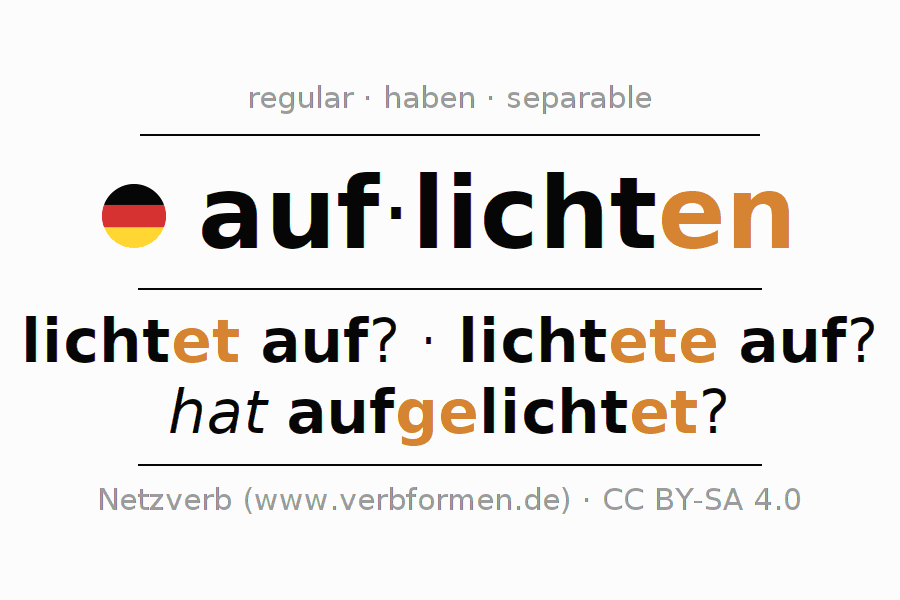 - Present: licht(e) (du) auf, lichten wir auf, lichtet (ihr) auf, lichten Sie auf