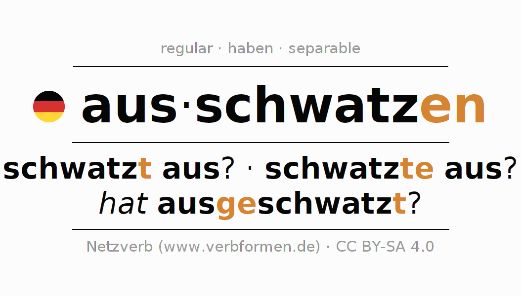 The forms of conjugation in the imperative Active present for the verb ausschwatzen
