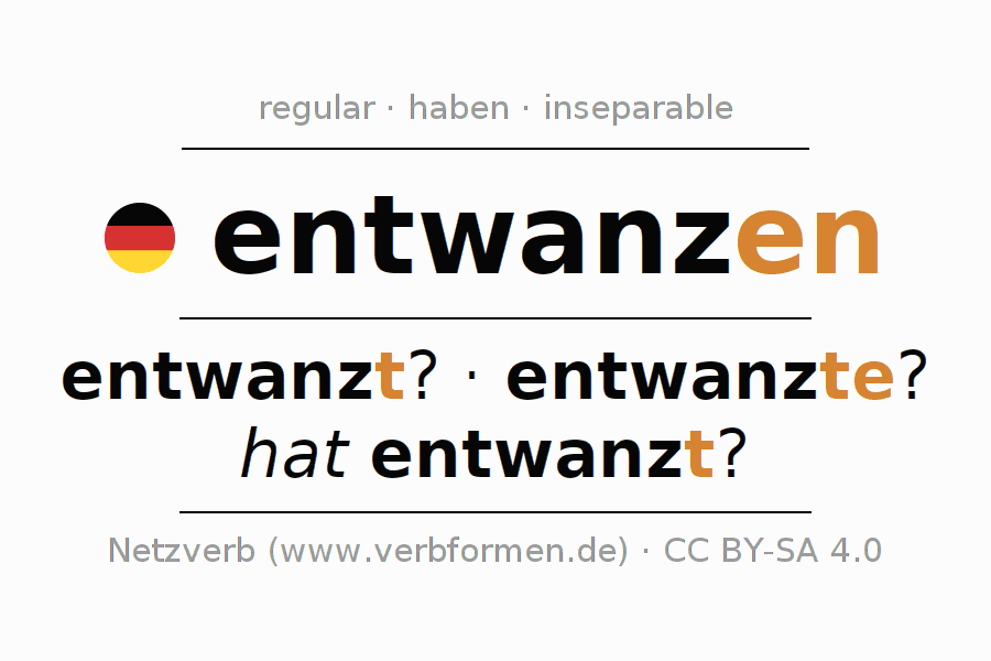 - Present: entwanz(e) ich?, entwanzt du?, entwanzt er?, entwanzen wir?, entwanzt ihr?, entwanzen sie?