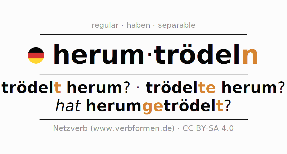 - Present: tröd(e)l(e) (du) herum, trödeln wir herum, trödelt (ihr) herum, trödeln Sie herum