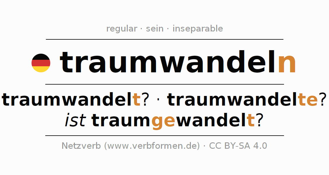 - Present: traumwand(e)l(e) (du), traumwandeln wir, traumwandelt (ihr), traumwandeln Sie
