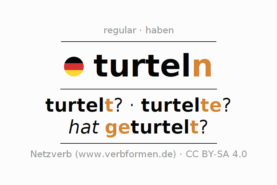 - Present: turt(e)l(e) (du), turteln wir, turtelt (ihr), turteln Sie
