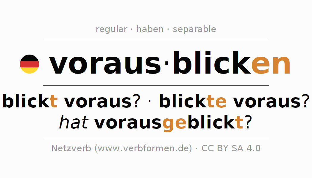- Present: blick(e) (du) voraus, blicken wir voraus, blickt (ihr) voraus, blicken Sie voraus