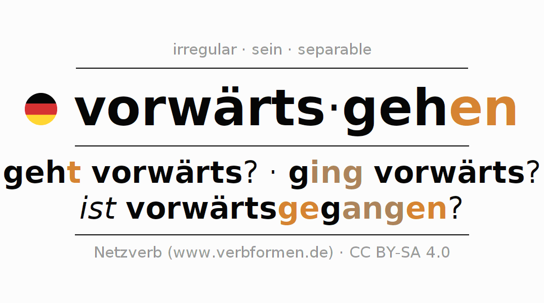 geht vorwärts? · ging vorwärts? · ist vorwärtsgegangen?