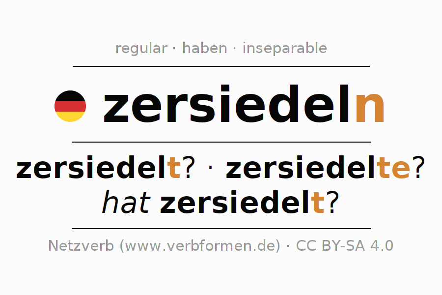 - Infinitive II: zersiedelt haben, zersiedelt zu haben