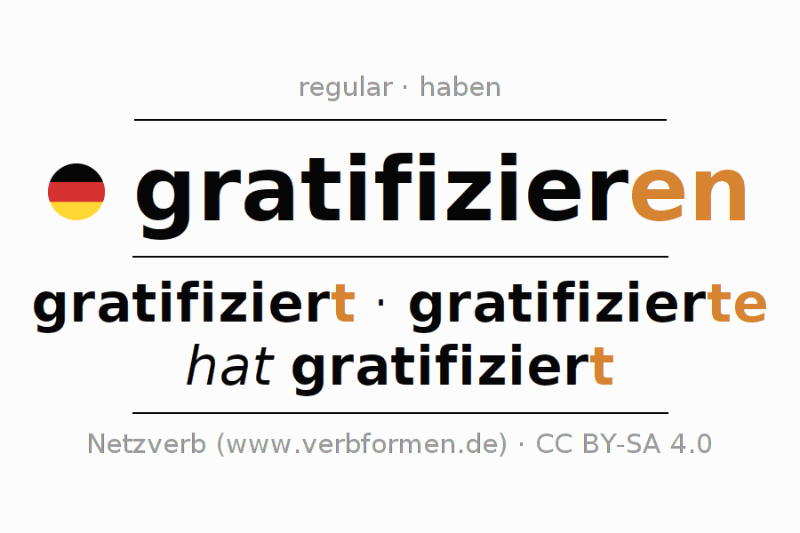 - Present: gratifizier(e) (du), gratifizieren wir, gratifiziert (ihr), gratifizieren Sie