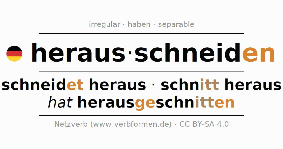 - Present: schneid(e) (du) heraus, schneiden wir heraus, schneidet (ihr) heraus, schneiden Sie heraus