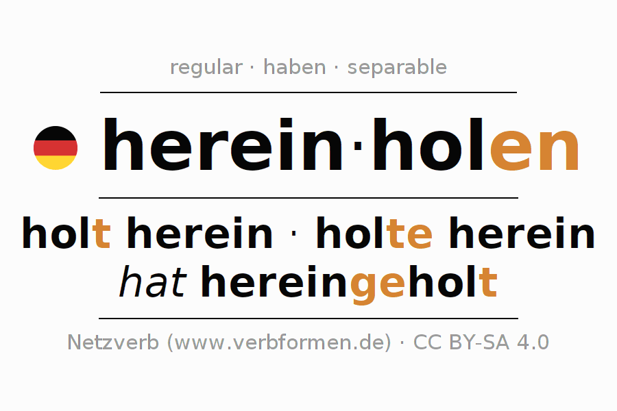 - Present: hol(e) (du) herein, holen wir herein, holt (ihr) herein, holen Sie herein