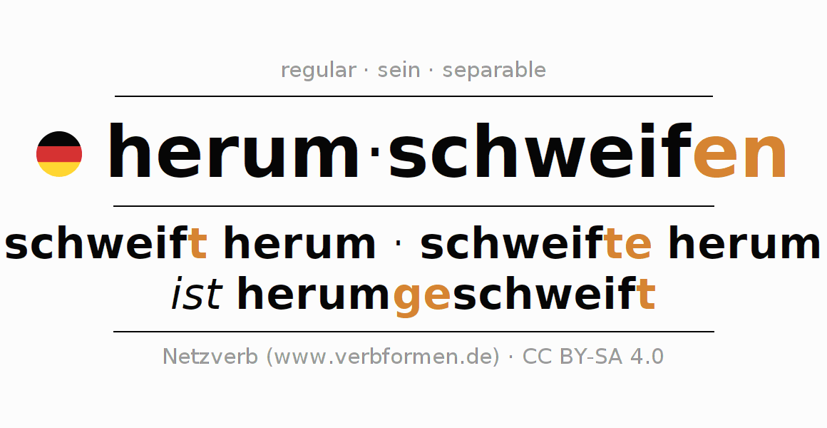 - Infinitive I: herumschweifen, herumzuschweifen