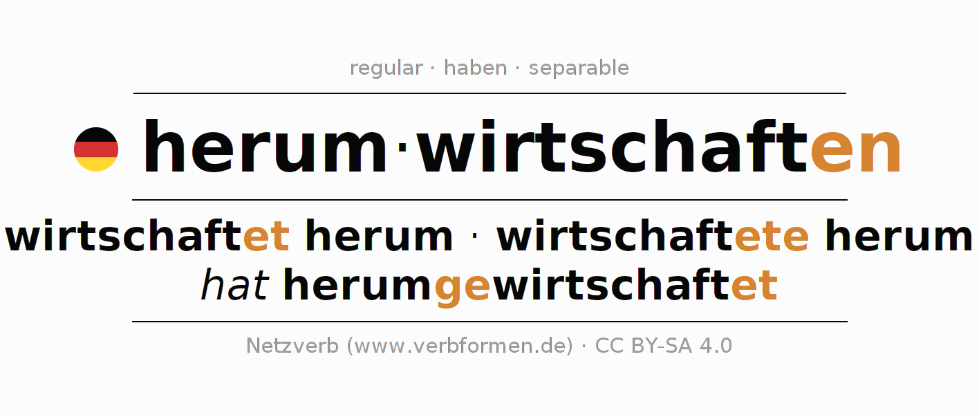 wirtschaftet herum · wirtschaftete herum · hat herumgewirtschaftet