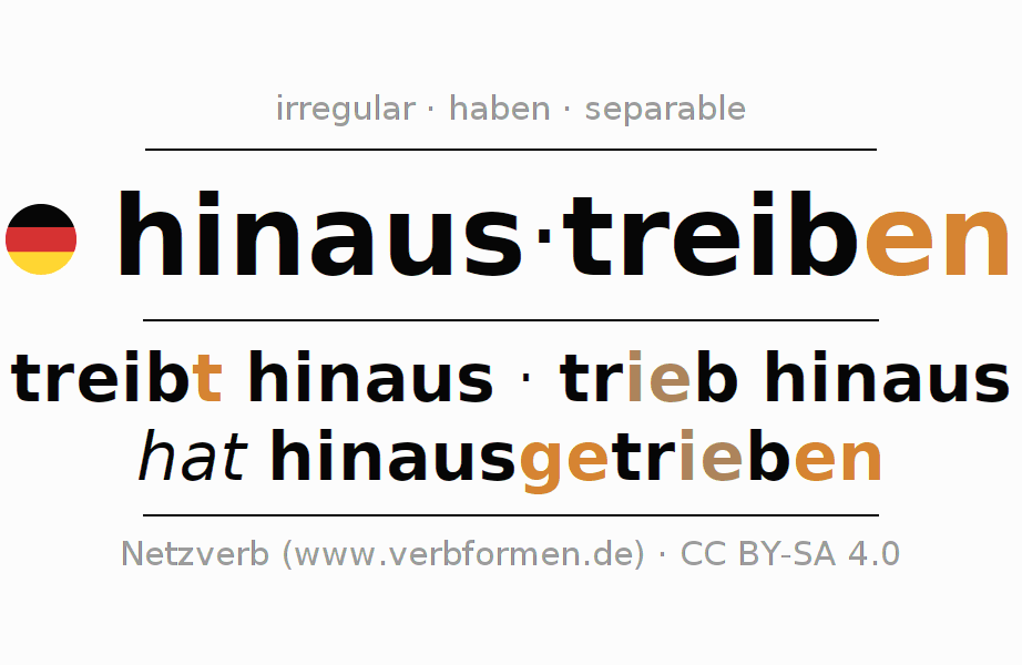 | ich | treib(e) hinaus | trieb hinaus | treibe hinaus | triebe hinaus | - |