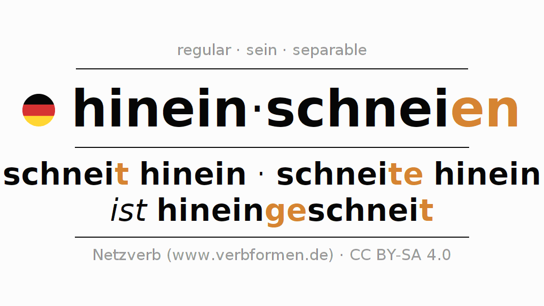 - Infinitive I: hineinschnei(e)n, hineinzuschnei(e)n