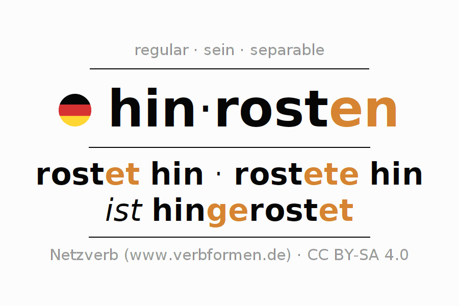 - Present: rost(e) (du) hin, rosten wir hin, rostet (ihr) hin, rosten Sie hin