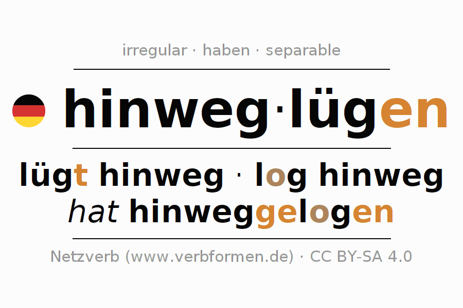 - Present: lüg(e) (du) hinweg, lügen wir hinweg, lügt (ihr) hinweg, lügen Sie hinweg