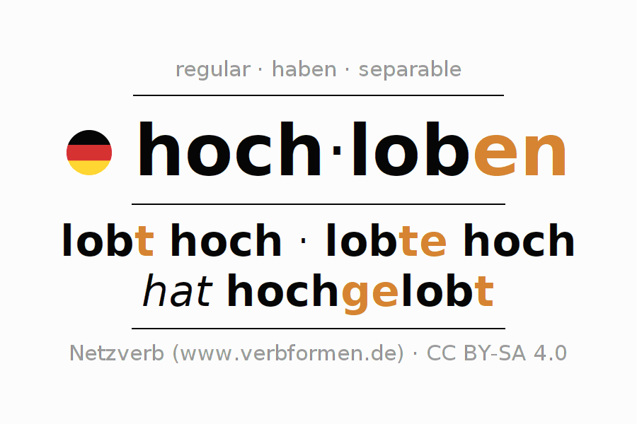 - Present: ich lob(e) hoch, du lobst hoch, er lobt hoch, wir loben hoch, ihr lobt hoch, sie loben hoch
