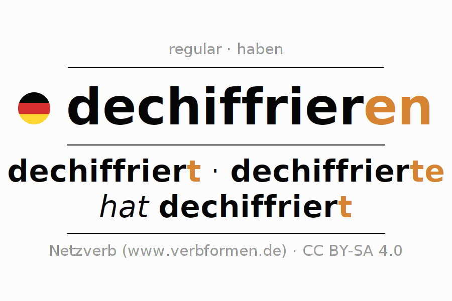 The verb dechiffrieren fully conjugated in all persons and numbers in the Imperative Present