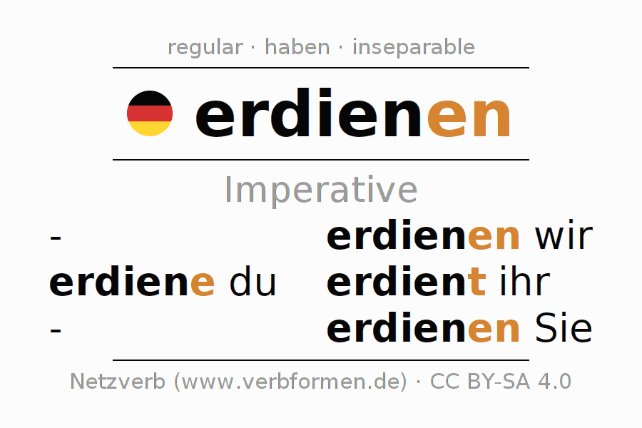 The verb erdienen fully conjugated in all persons and numbers in the Imperative Present