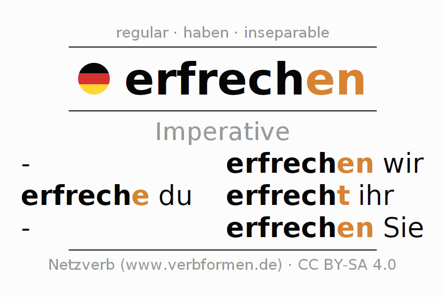 The verb erfrechen fully conjugated in all persons and numbers in the Imperative Present
