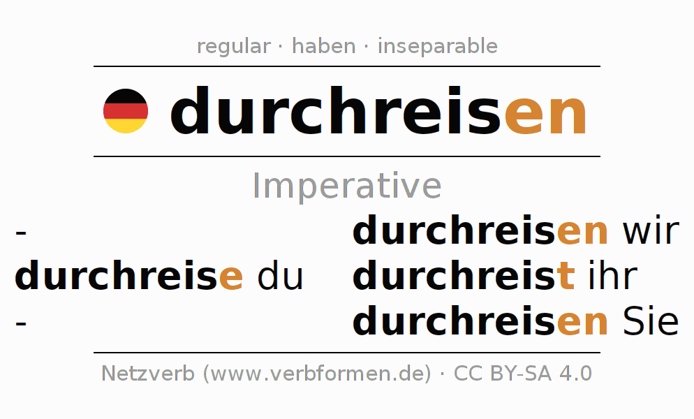 The verb durchreisen (hat) fully conjugated in all persons and numbers in the Imperative Present