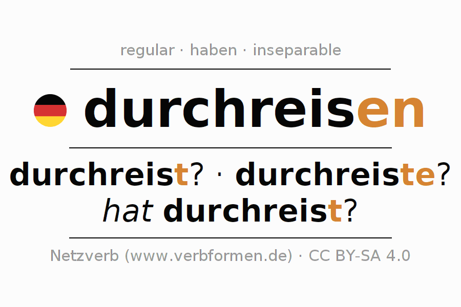 The conjugation of durchreisen in Imperative Present Imperative Active is durchreise (du), durchreisen wir, durchreist (ihr), durchreisen Sie.The conjugation corresponds to certain grammatical rules. Likewise the requirements for the conjugation of the simple verb forms of durchreisen in Imperative. Comments ☆