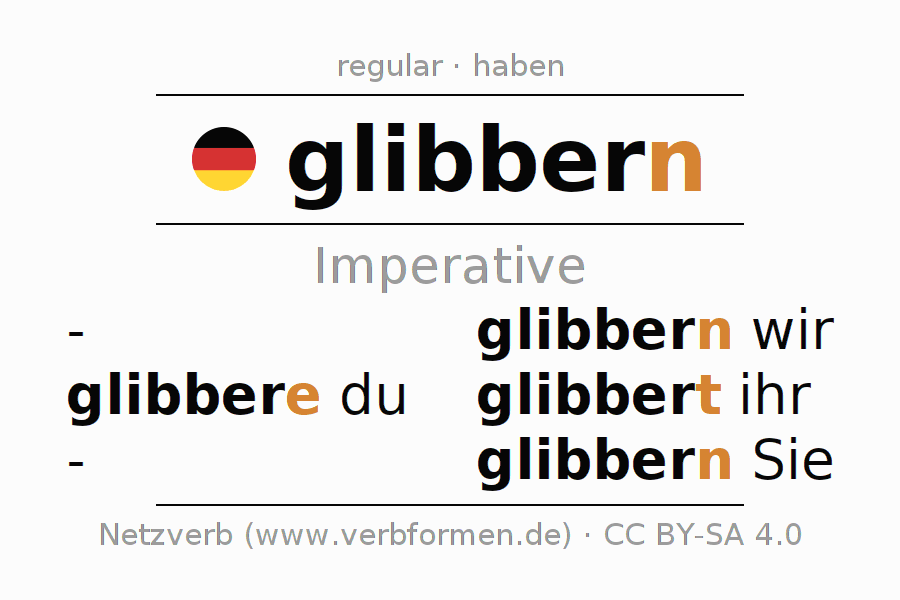 The verb glibbern (hat) fully conjugated in all persons and numbers in the Imperative Present