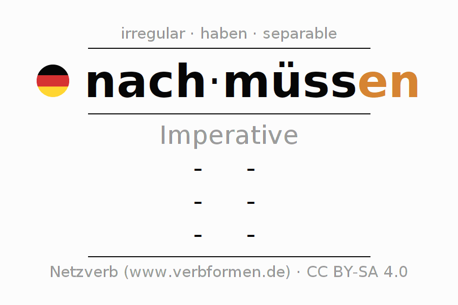 The verb nachmüssen fully conjugated in all persons and numbers in the Imperative Present