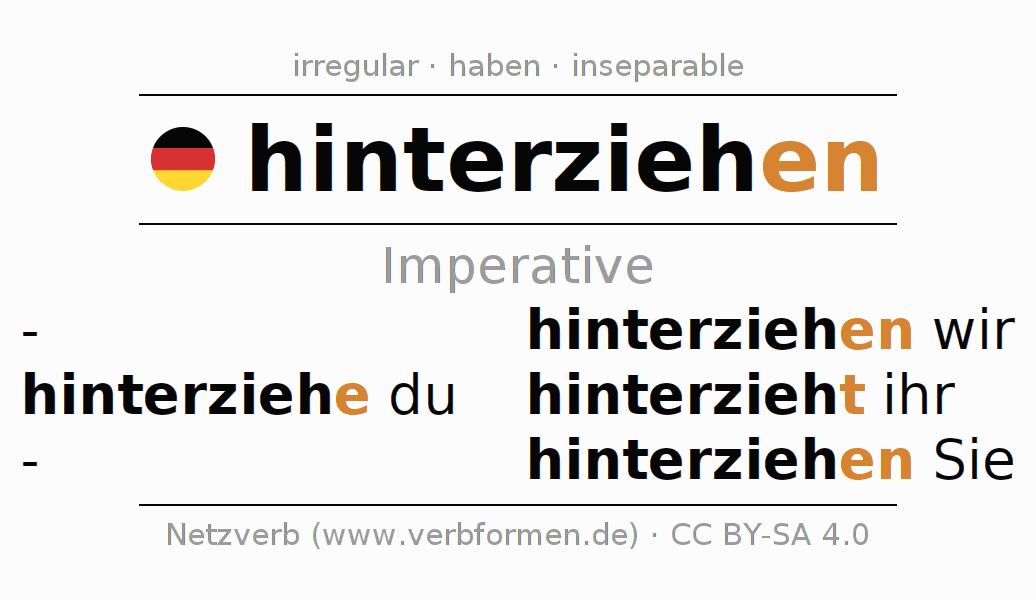 The verb hinterziehen fully conjugated in all persons and numbers in the Imperative Present