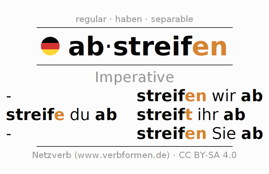 The verb abstreifen (hat) fully conjugated in all persons and numbers in the Imperative Present