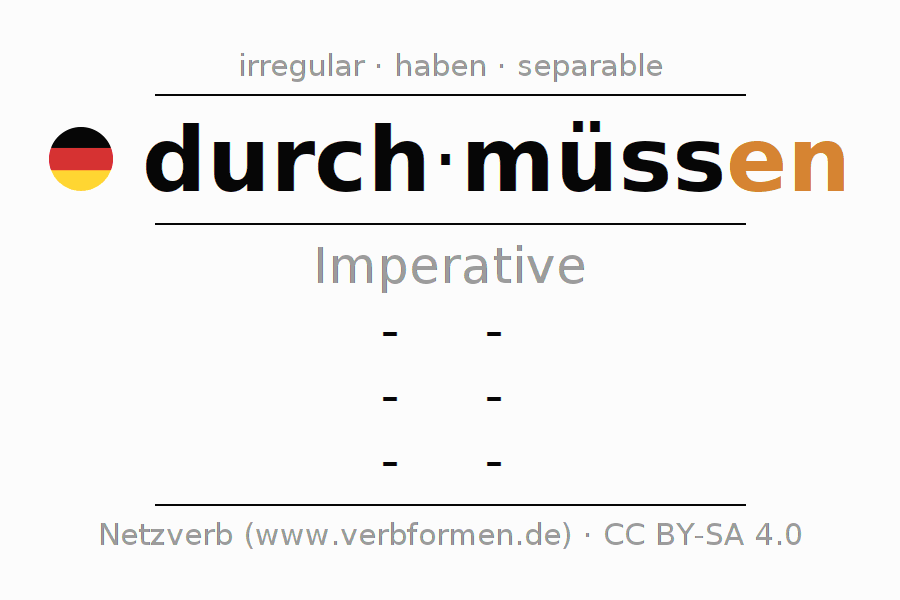 The verb durchmüssen fully conjugated in all persons and numbers in the Imperative Present