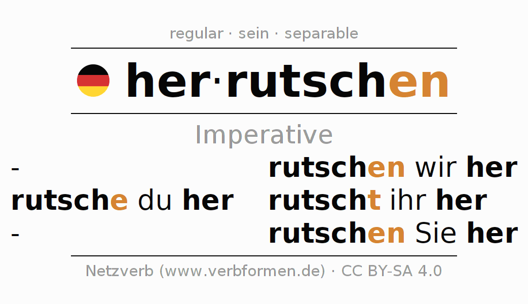 The verb herrutschen fully conjugated in all persons and numbers in the Imperative Present