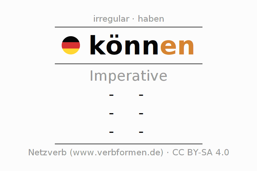 The verb können fully conjugated in all persons and numbers in the Imperative Present