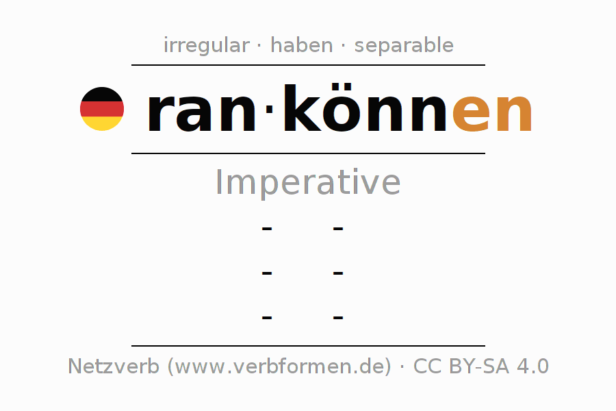 The verb rankönnen fully conjugated in all persons and numbers in the Imperative Present