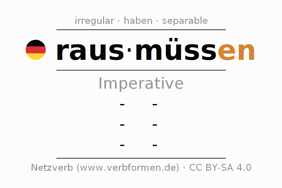 The verb rausmüssen fully conjugated in all persons and numbers in the Imperative Present