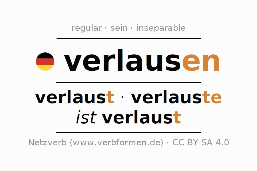 The conjugation of verlausen (infest) in the imperative is: verlause (du), verlausen wir, verlaust (ihr), verlausen Sie. The imperative is formed with the stem of present tense laus. The endings -e, -en, -t, -en are appended to the stem. The personal pronoun is usually omitted in the 2nd person singular.The formation of the forms corresponds to the grammatical rules for the conjugation of the verbs in imperative. Comments ☆