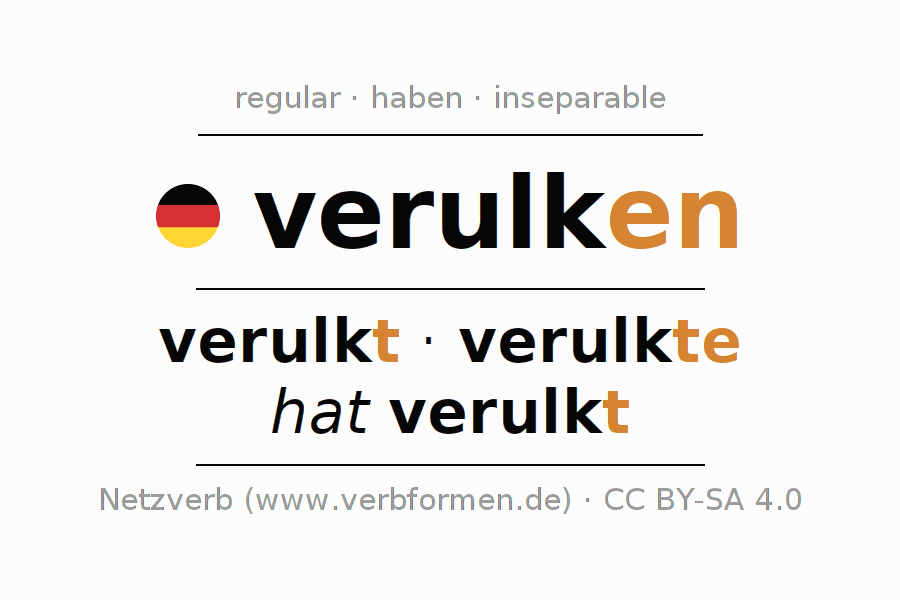 The verb verulken fully conjugated in all persons and numbers in the Imperative Present