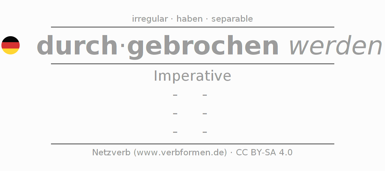 The verb durch-brechen (hat) fully conjugated in all persons and numbers in the Imperative Present