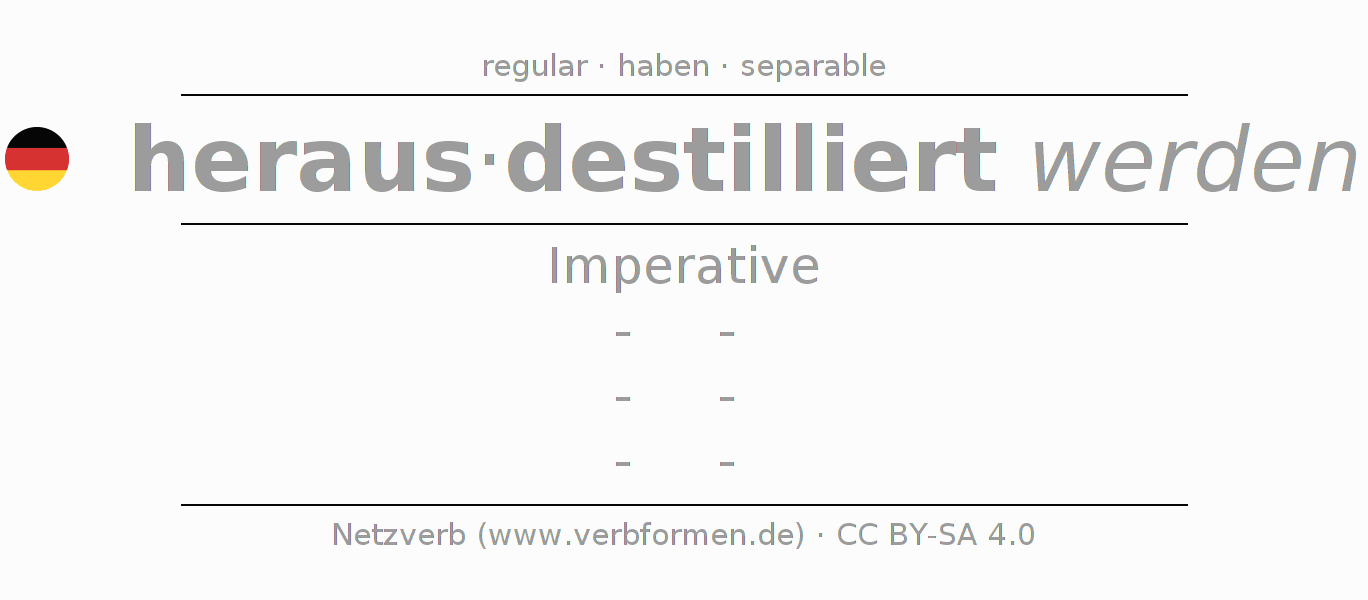 The verb herausdestillieren fully conjugated in all persons and numbers in the Imperative Present