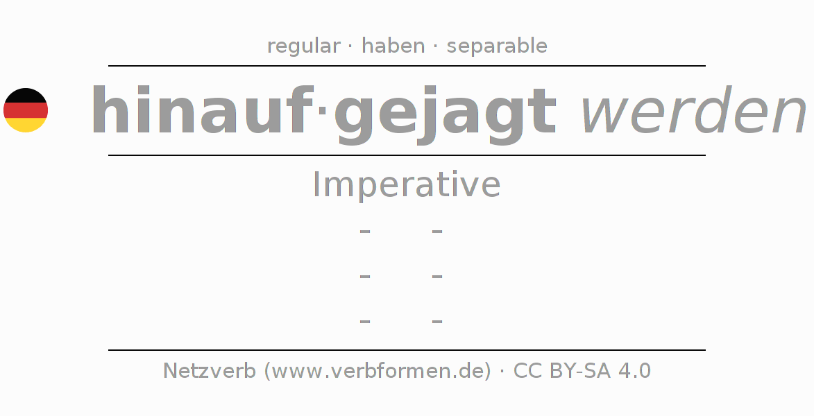 The verb hinaufjagen (hat) fully conjugated in all persons and numbers in the Imperative Present