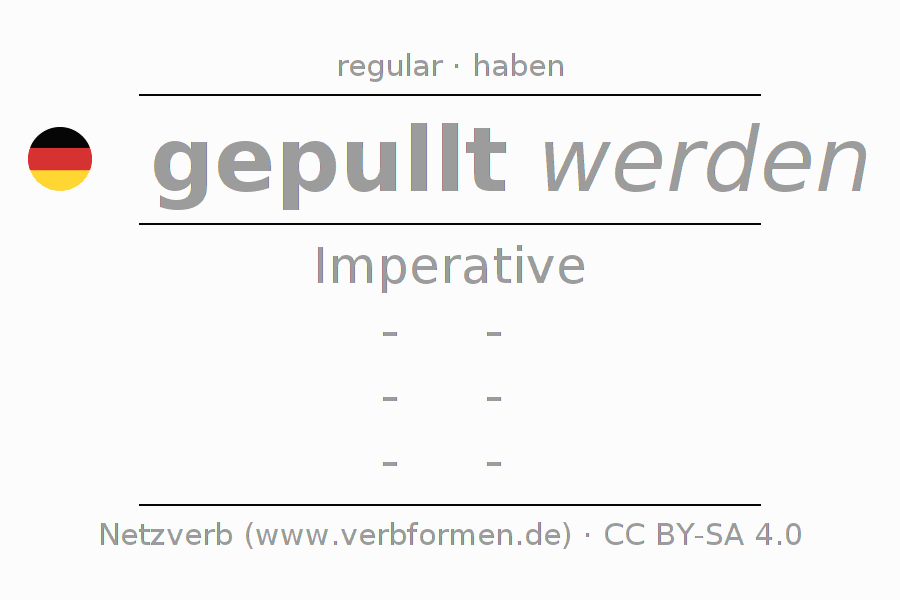 The conjugation of pullen in Imperative Present Imperative Passive is -, -, -, -.The conjugation corresponds to certain grammatical rules. Likewise the requirements for the conjugation of the simple verb forms of pullen in Imperative. Comments ☆
