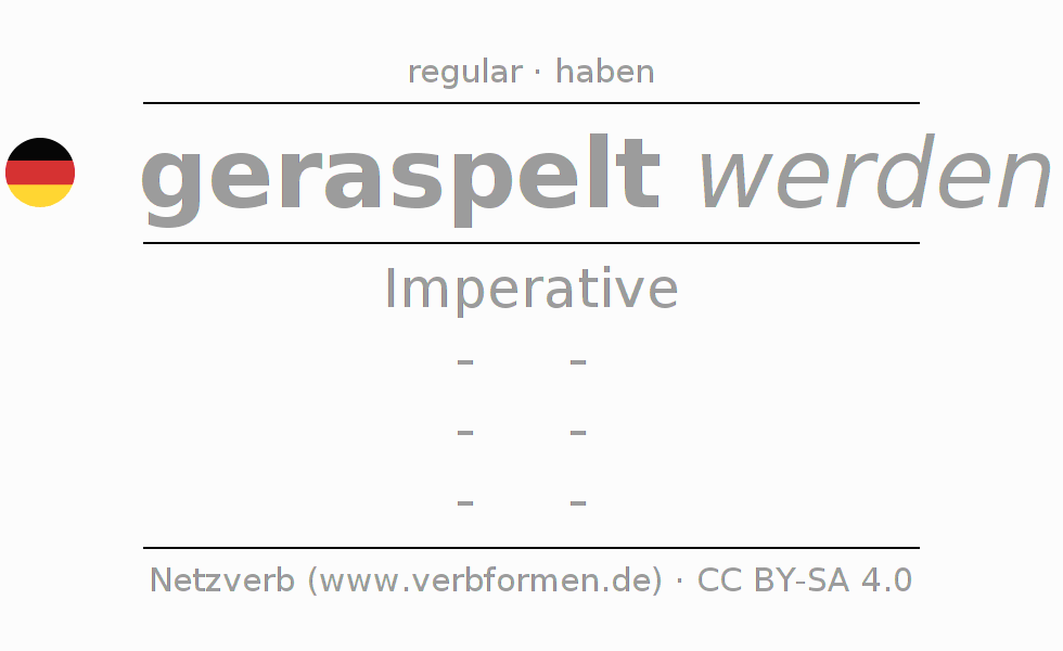 The verb raspeln fully conjugated in all persons and numbers in the Imperative Present