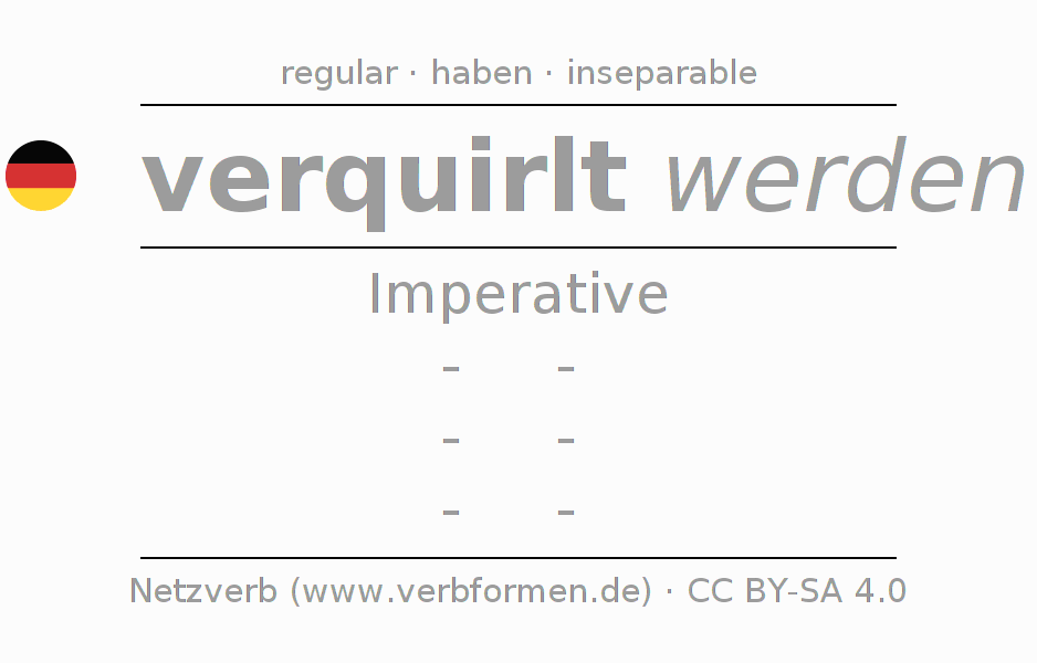 The verb verquirlen fully conjugated in all persons and numbers in the Imperative Present
