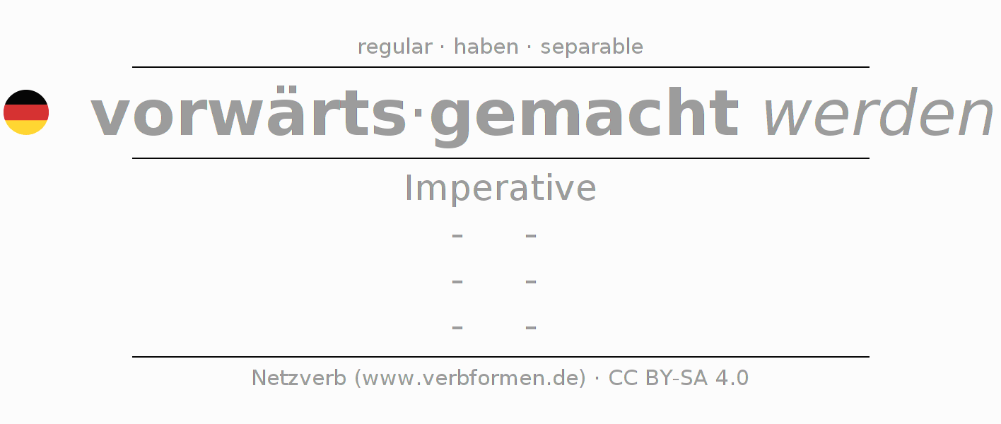 The verb vorwärtsmachen fully conjugated in all persons and numbers in the Imperative Present